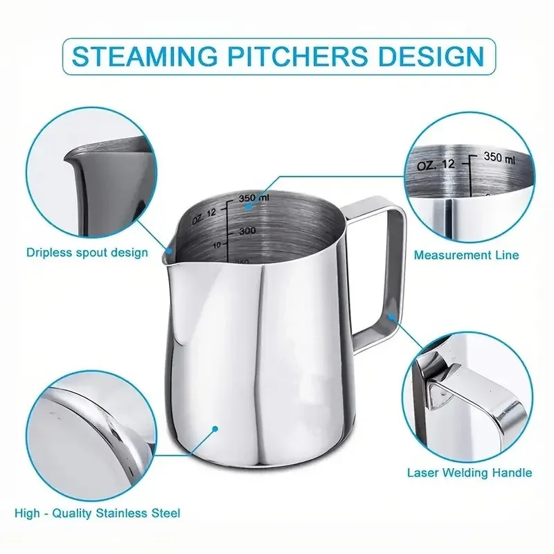 350/600/1000ml Milk Creamer Frothing Pitcher With Scale Stainless Steel Coffee Cup Jug Latte Espresso Steaming Cappuccino Cup