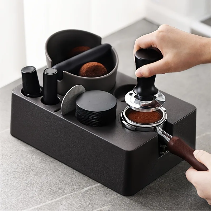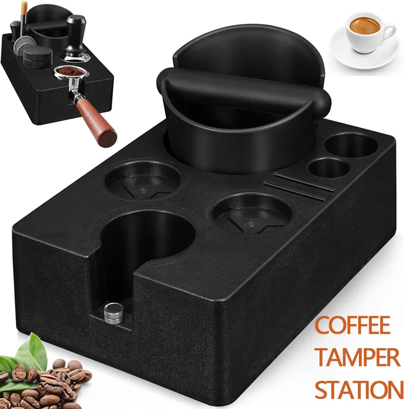 - 7 in 1 espresso tamper station: the tamper station with knocking container for portafilters, tampers, distributors etc., is an indispensable accessory for any passionate barista. It combines seven different functions in one practical unit and thus ensures optimal organisation of your coffee utensils.